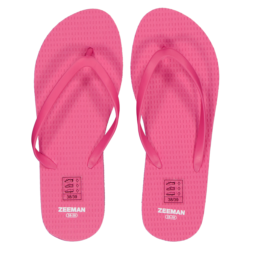 Deze roze slippers voor dames zijn gemaakt van polyester met een bovenkant van polyvinylchloride. De lichte en flexibele zool zorgt voor prettig loopcomfort, bijvoorbeeld op het strand of in de tuin. Door het eenvoudige ontwerp trek je de slippers makkelijk aan en uit. De opvallende kleur maakt het gemakkelijk om ze terug te vinden wanneer je ze neerzet of draagt.