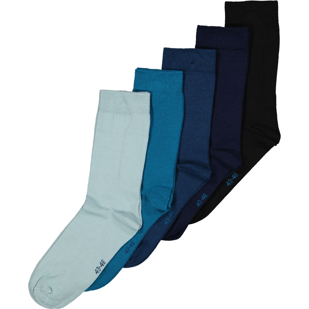 Deze set van 5 herensokken heeft verschillende blauwtinten en een effen patroon. De sokken zijn gemaakt van katoen, polyester en elastaan. Door deze mix voelen de sokken zacht aan en sluiten ze goed aan om de voet. Het eenvoudige ontwerp maakt ze praktisch voor dagelijks gebruik en zorgt dat ze stevig blijven zitten in je schoenen.