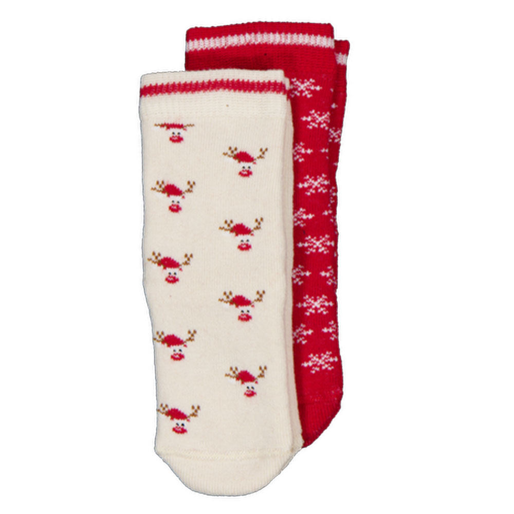 De stof bestaat voor 80% uit katoen, voor 17% uit polyester en voor 3% uit elastaan. Dankzij het katoen voelt de stof zacht aan. En ademt het goed. Zo schuurt de stof niet langs de huid en krijgt de kleine ook geen te warme voetjes. Sokken waar veel polyester in zit kunnen een goede keuze zijn als je geen last hebt van zweetvoeten. Polyester neemt namelijk minder vocht op dan katoen of wol, maar is wel vorm- en kleurvaster. De sok behoudt zo langer zijn fijne pasvorm en blijft langer mooi. Doordat er elastaan is toegevoegd, heeft de stof meer stretch. Dit zorgt voor een aansluitende pasvorm.