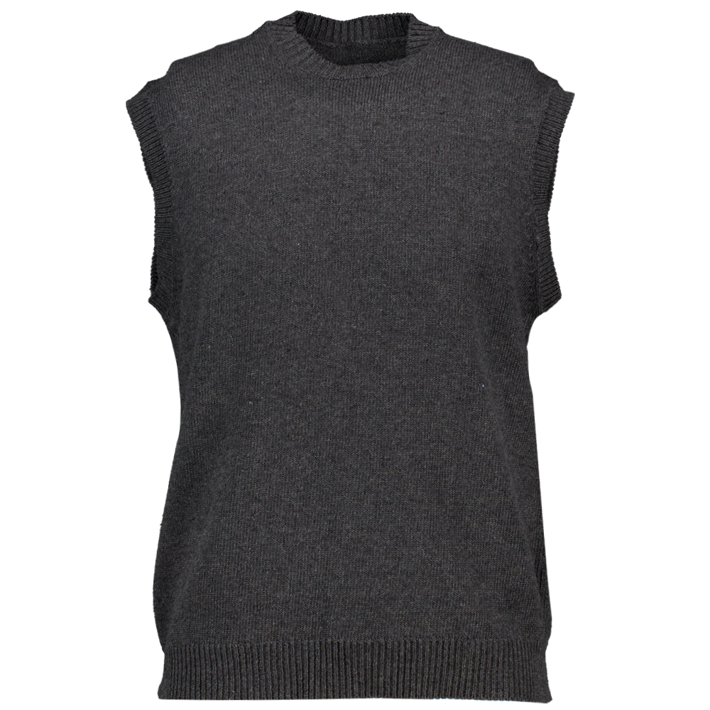 Deze fijngebreide spencer in de kleur antraciet heeft een rechte pasvorm en een ronde hals met ribboord. De spencer is gemaakt met verschillende gerecyclede materialen, waaronder acryl, viscose en katoen. Draag de spencer over een overhemd of T-shirt. Ook verkrijgbaar in een zandkleur.