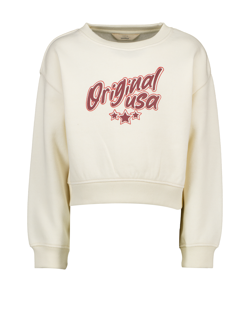 Deze beige sweater voor meisjes is gemaakt van een zacht gebreide fleecestof. De trui heeft een ronde hals en lange mouwen met geribde boorden. Hierdoor blijft de trui goed zitten en is hij comfortabel om te dragen.