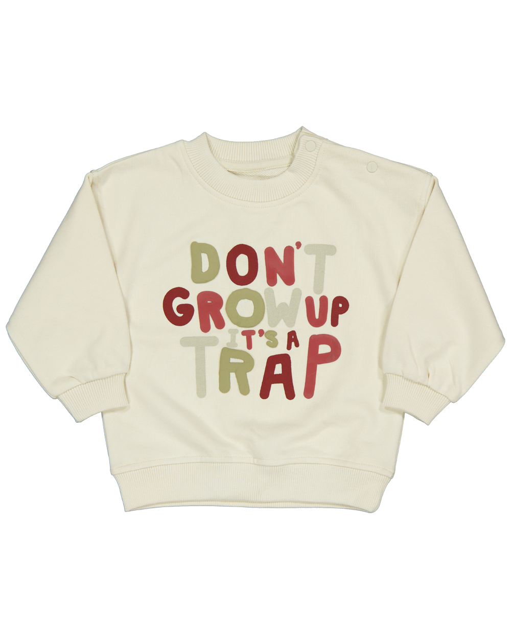Deze beige babytrui met lange mouwen is gemaakt van zachte French terry. De ronde hals heeft aan één kant knoopjes, waardoor aan- en uitkleden eenvoudig is. De comfortabele stof voelt prettig aan op de huid en biedt optimale bewegingsvrijheid voor je kleintje.