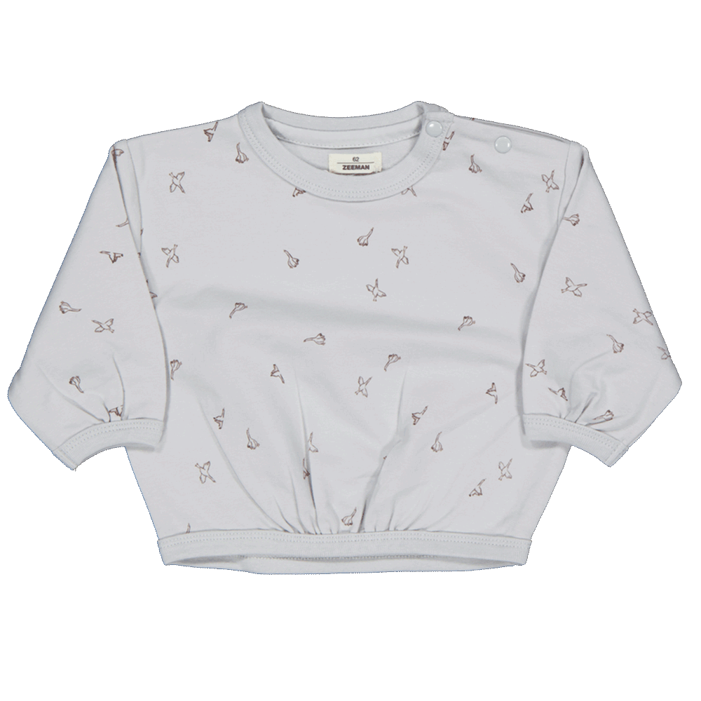 Deze unisex sweater voor baby's is gemaakt van Franse terry, wat zorgt voor een zachte en comfortabele pasvorm. De samenstelling van 95% katoen en 5% elastaan geeft rek en bewegingsvrijheid. Het patroon met een all-over print voegt een speelse touch toe, perfect voor elke dag.
