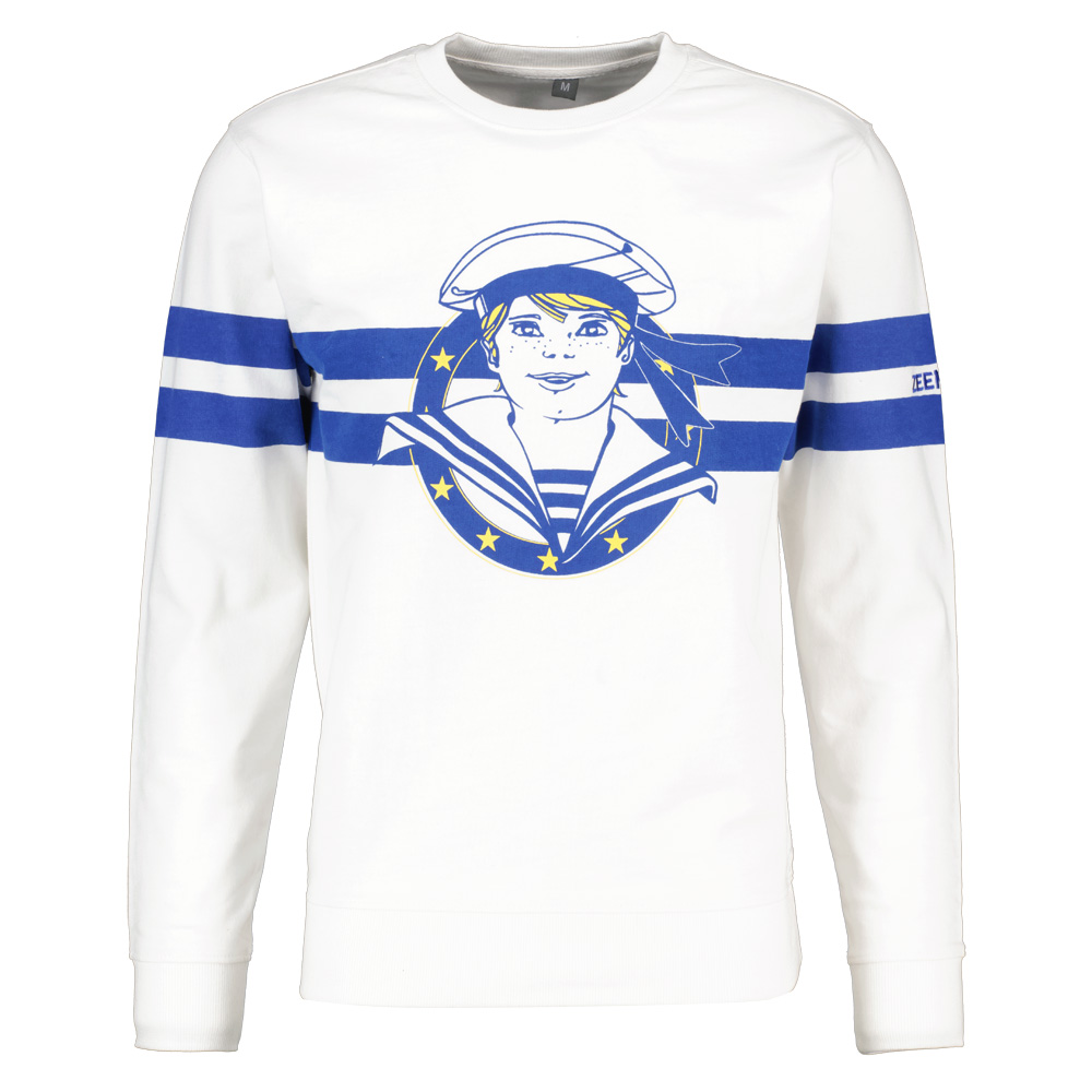 Een statement maken met de kleding die je draagt. Dat kan met de artikelen uit onze fancollectie. Deze witte Zeeman sweater heeft een grote opdruk van Koos Matroos op de voorkant. Rond de uiteinden van de mouwen en de onderkant van de trui lopen ribboorden met versmalde openingen. Hierdoor sluiten deze delen van de trui mooi en goed aan. De stof is voor 50% gemaakt van katoen en voor 50% van polyester. Door de combinatie van katoen en polyester voelt de stof lekker zacht en warm aan. 12,5 jaar geleden introduceerde Zeeman het eerste artikel voor de echte fans. Nu brengen we de klassiekers terug, samen met een aantal nieuwe Zeeman fanshop-items.