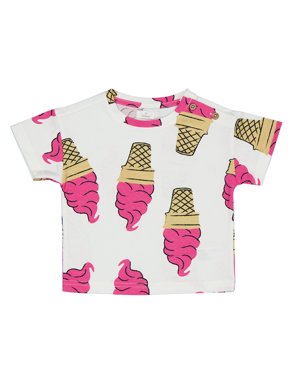 Dit witte T-shirt voor baby's is gemaakt van 100% katoen. Het heeft korte mouwen en een ronde hals met knoopsluiting op de schouder, wat het aan- en uitkleden vergemakkelijkt. Het materiaal voelt zacht aan en is geschikt voor gevoelige babyhuid.