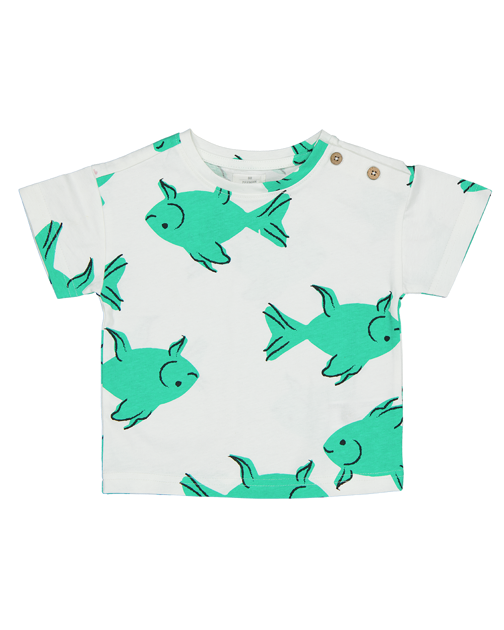 Deze witte T-shirt voor jongens is gemaakt van 100% katoen. Het materiaal voelt zacht aan en draagt comfortabel. Dankzij de korte mouwen is de T-shirt geschikt voor warme dagen en biedt het voldoende bewegingsvrijheid. De knoopsluiting op de schouder maakt het aan- en uitkleden gemakkelijker.