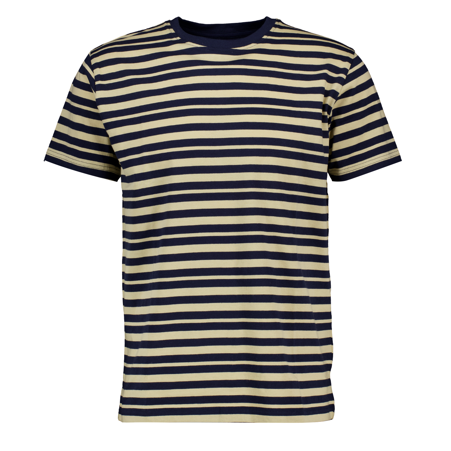 Dit T-shirt voor mannen is gemaakt van 100% katoen, wat zorgt voor een comfortabele pasvorm. Het heeft een gestreept ontwerp in verschillende tinten blauw. De ronde hals en korte mouwen bieden een casual uitstraling. Dit T-shirt is veelzijdig en eenvoudig te combineren met verschillende outfits. Het wordt per stuk verkocht.