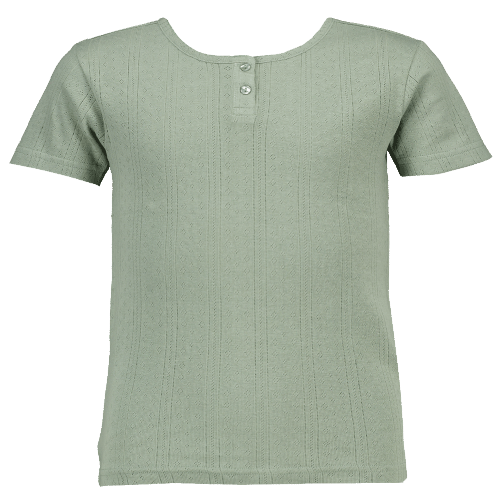 Dit meisjes T-shirt in een frisse groene kleur is gemaakt van 100% katoen. Het heeft een comfortabele ronde hals en korte mouwen. Het fijne pointelle materiaal zorgt voor een luchtige uitstraling. Dit T-shirt is geschikt om te combineren met verschillende outfits en biedt een fijne pasvorm voor elke dag.