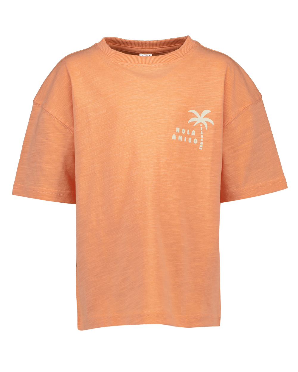 Deze roze T-shirt is gemaakt van 100% katoen en heeft een comfortabele, rechte pasvorm. Op de borst staat een kleine witte print met een palmboom en de tekst 'Hola Mojis'. De stof voelt zacht aan en de naden zijn netjes afgewerkt. Het eenvoudige ontwerp en de korte mouwen maken deze T-shirt praktisch voor dagelijks gebruik in warme dagen.