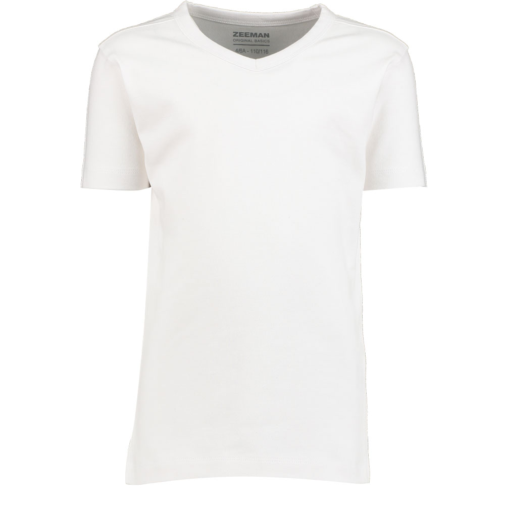 Dit witte T-shirt voor jongens is gemaakt van katoen met een beetje elastaan, waardoor het stevig aanvoelt en licht meerekt. De V-hals zorgt ervoor dat het shirt minder zichtbaar is als je het onder een trui of overhemd draagt en geeft een open uitstraling. De korte mouwen maken het geschikt om los te dragen op warme dagen of als ondershirt. De smalle, stevige afwerking van de halszoom zorgt ervoor dat deze mooi blijft zitten, ook na vaker wassen. Ook door de effen witte kleur is dit jongens T-shirt een echte basic voor iedere dag.