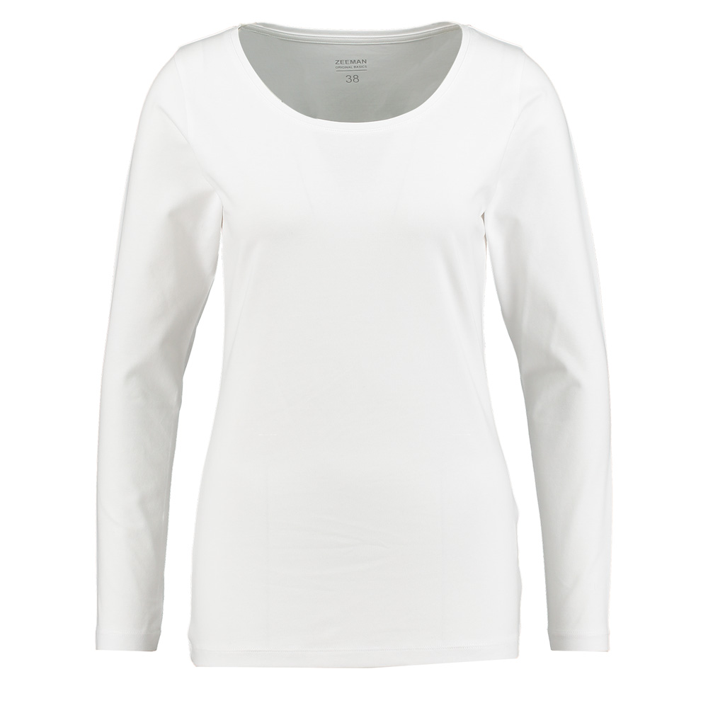 Dit witte dames T-shirt met lange mouwen en een ronde hals is gemaakt van 95% katoen en 5% elastaan. De stof voelt zacht aan en biedt een lichte stretch, waardoor het prettig zit en makkelijk meebeweegt. Door het eenvoudige ontwerp kun je deze basic op verschillende manieren combineren.
