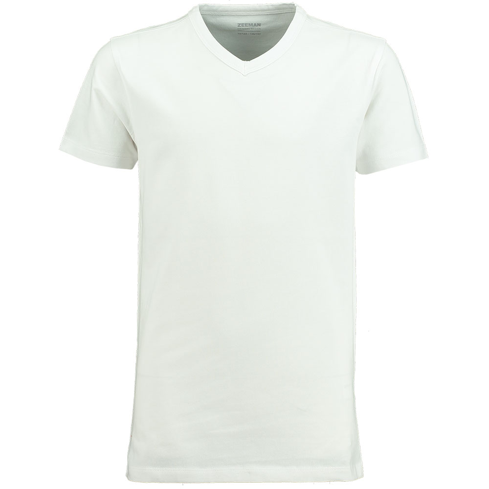 Dit witte T-shirt voor jongens is gemaakt van katoen met een beetje elastaan. Hierdoor voelt de stof stevig aan en beweegt het T-shirt mee met je lichaam, wat prettig zit tijdens het dragen. De V-hals zorgt ervoor dat het shirt minder zichtbaar is onder een trui of overhemd en geeft een open uitstraling wanneer je hem los draagt. De korte mouwen en het eenvoudige ontwerp maken dit T-shirt geschikt voor dagelijks gebruik of als onderkleding. De hals is netjes afgewerkt met een smalle zoom die mooi blijft, ook na meerdere wasbeurten.