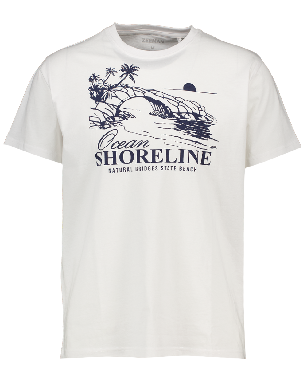 Dit T-shirt voor mannen is gemaakt van 100% katoen. Het biedt comfort en een fijne pasvorm. De frisse witte kleur met een opvallende afbeelding maakt het een leuke keuze voor elke casual look. Door de ronde hals is het eenvoudig te combineren met andere kledingstukken. Dit shirt heeft een enkele verpakking.