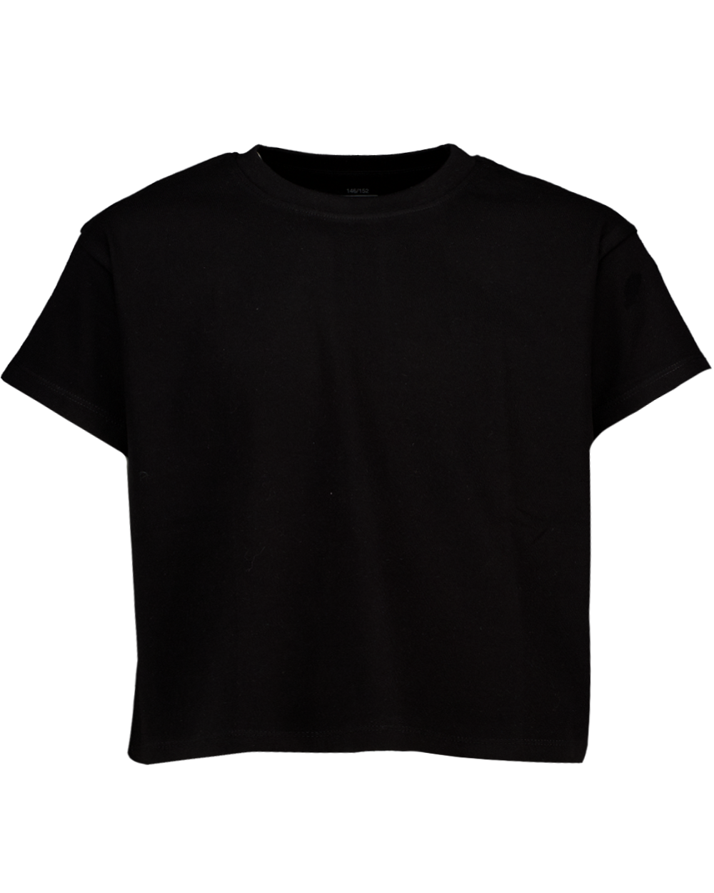 Deze zwarte T-shirt is gemaakt van 100% katoen en heeft een eenvoudige, rechte pasvorm. De stof voelt glad en stevig aan, zonder zichtbare prints, knoopjes of andere details. Dankzij de korte mouwen en ronde hals is het shirt geschikt voor dagelijks gebruik. De katoenen samenstelling zorgt voor een prettig draagcomfort en is makkelijk te onderhouden.