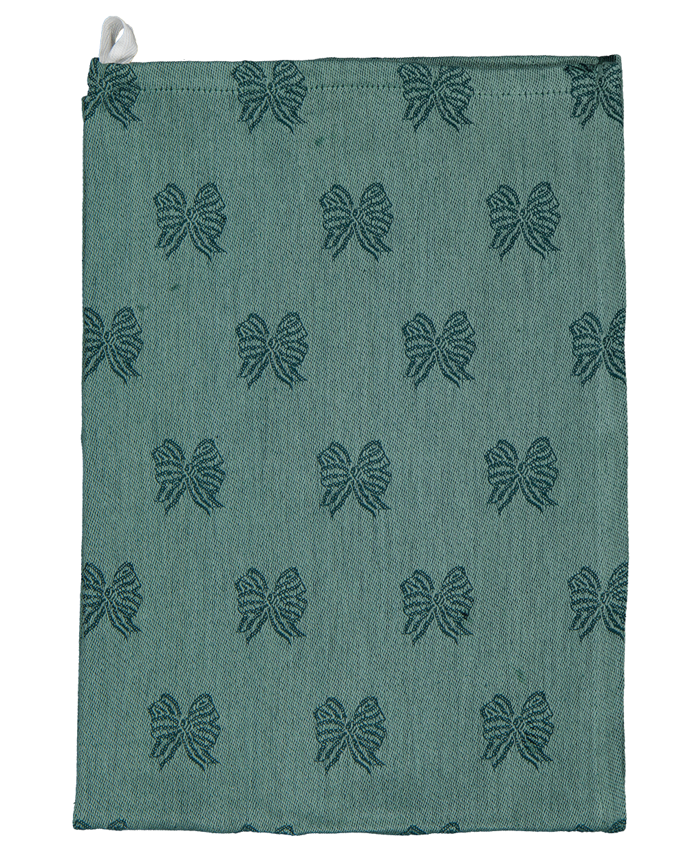 Deze groene theedoek is gemaakt van 100% katoen en heeft een patroon met strikjes. De doek neemt goed vocht op, waardoor je servies en bestek eenvoudig kunt afdrogen. Met het ophanglusje hang je de theedoek makkelijk op. Praktisch voor dagelijks gebruik in de keuken. De theedoek is wasbaar en geschikt voor herhaald gebruik.