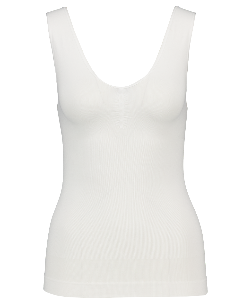 Deze zwarte shaping top is gemaakt van een extra rekbare stof die aansluit op je lichaam. Shapewear is ondergoed dat je buik, heupen of benen wat gladder maakt en dus een vormend effect heeft. Je kunt het dragen onder bijvoorbeeld een aansluitende jurk of broek. Doordat de schouderbanden breed zijn zakken ze niet af en zie je de bandjes van je BH niet zitten. De V-hals maakt deze top geschikt om onder een blouse of trui met een open hals te dragen. Een tijdloze basic die elke dag van pas komt.